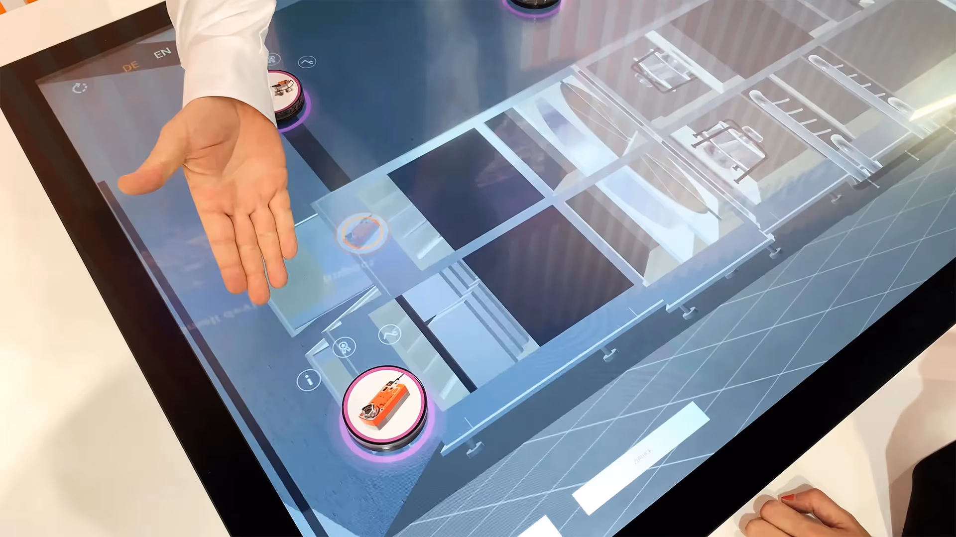 The application allows for the innovative presentation of complex products, which can be easily explained in a playful manner using 3D real-time control combined with tangibles. Even the operation in a digital ventilation system can be simulated by triggering processes through the movement of objects (products).