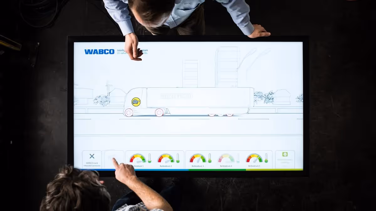 JHA - Interactive multitouch applications for the three-dimensional placement of autonomous driving components within digital vehicle models, providing extensive information about the position and function of these components. These applications cater to logistics companies, long-haul truck drivers, as well as internal presentations showcasing the comprehensive product range.